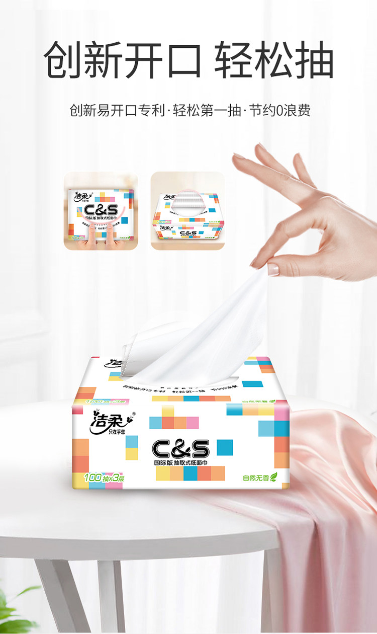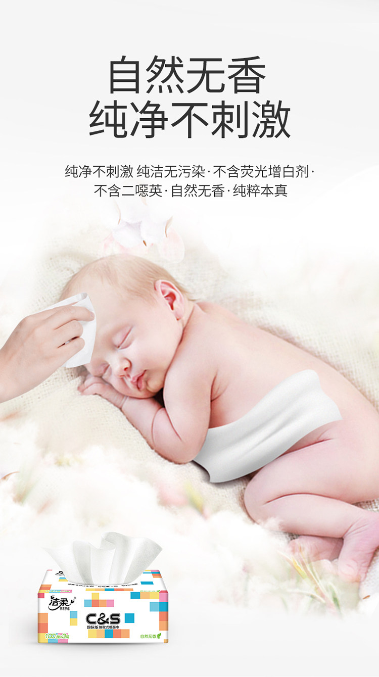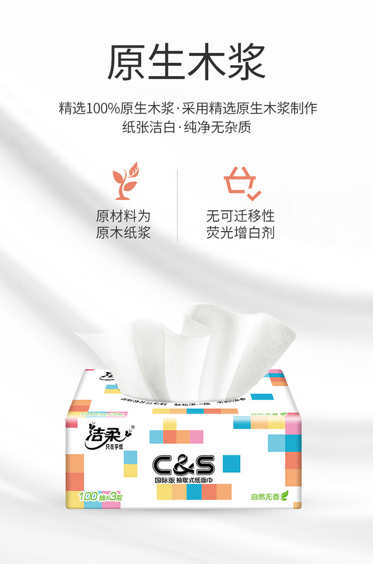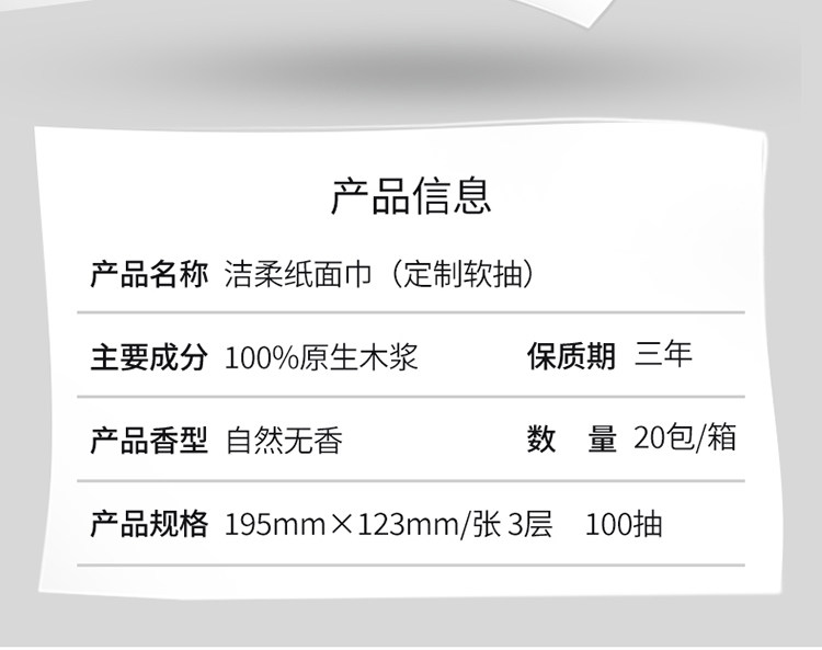 名称:柔抽纸定制款软抽纸巾3层100抽20包家用箱装