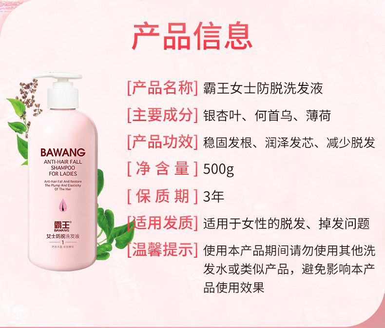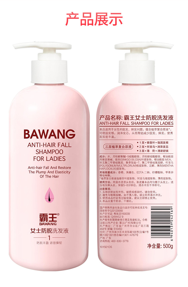 名称:霸王女士防脱洗发液500g何首乌防掉发固发蓬松控油洗发水洗发露