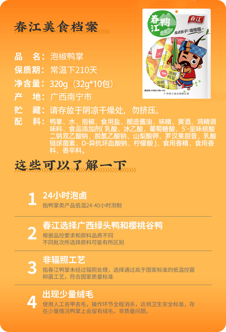 名称:广西春江休闲夜宵即食卤味追剧零食泡椒味有骨鸭掌鸭脚泡鸭爪10支